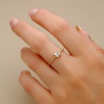 18K SORTIJA ORO AMARILLO 14 DIAMANTE 0,070 QTS, G-VS2 AGUAMARINA 4X4 MM ANCHO 1 MM