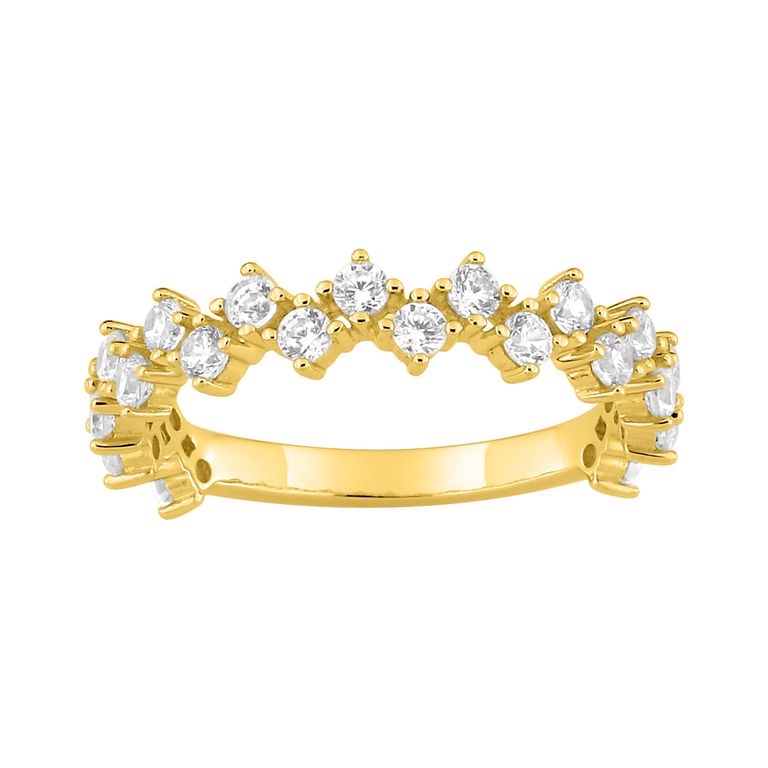 Este elegante anillo DARYA está meticulosamente elaborado en oro amarillo de 18 quilates (750 O.A), presentando un diseño contemporáneo y llamativo. La característica principal es su distintiva banda de diamantes en un engaste de zigzag o forma de tiara, que maximiza el brillo y capta la luz desde todos los ángulos.