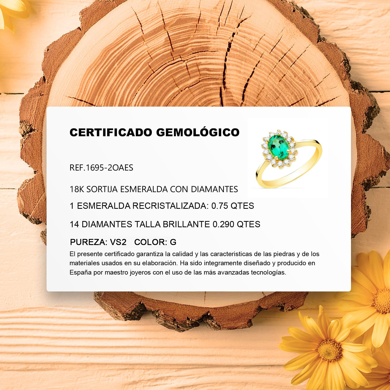 18K SORTIJA ORO AMARILLO ESMERALDA 7X5 MM 0,75 QTS, DIAMANTES 0,290 QTS, VS2-G 11,5X9,5 MM