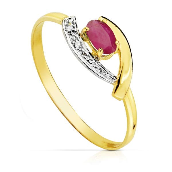 18K SORTIJA ORO BICOLOR CON CIRCONITA Y RUBI 5X3 MM