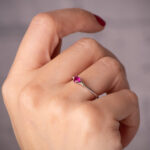 18K SORTIJA ORO BLANCO CORINDON RECONSTRUIDO CORAZON RUBI 4X4 MM CON GALLONES,