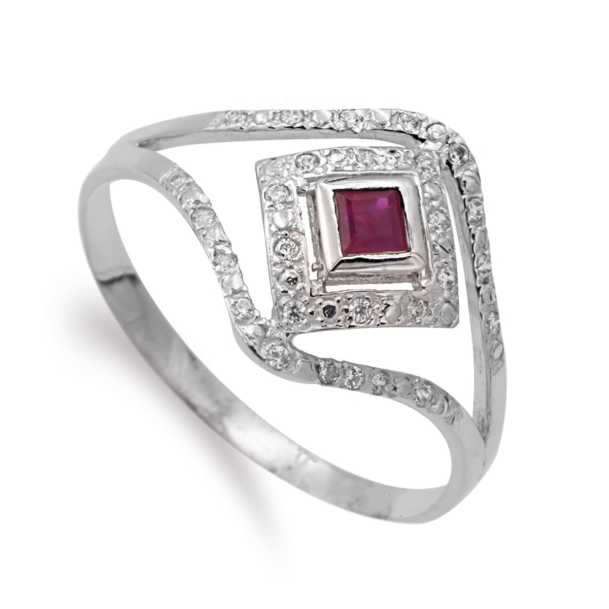 18K SORTIJA ORO BLANCO ROMBO CON RUBI Y CIRCONITAS, ANCHO: 13 MM