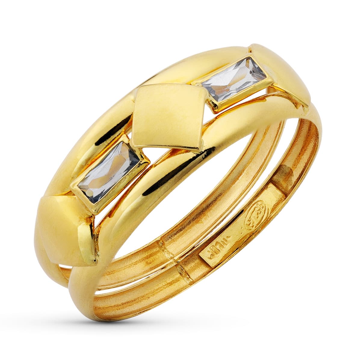18K SORTIJA ORO AMARILLO 2 CUERPOS CON PIEDRAS RECTANGULARES, ANCHO: 6 MM