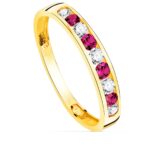 18K SORTIJA ORO AMARILLO 9 CIRCONITA BLANCAS Y ROJAS, ANCHO CUERPO 3,5 MM