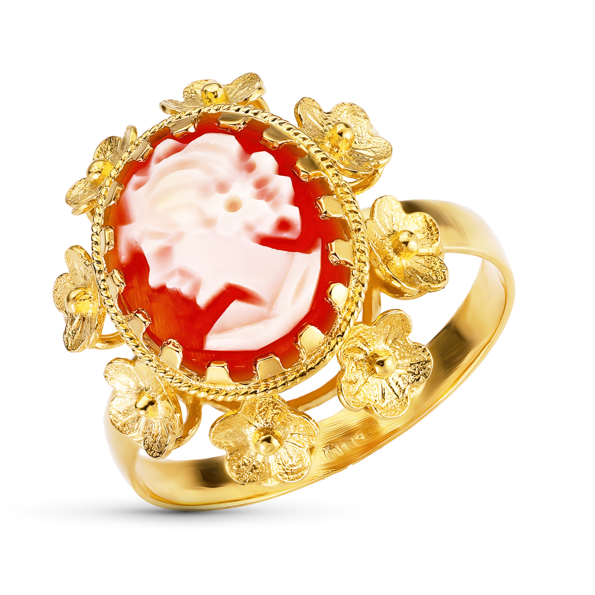18K SORTIJA ORO AMARILLO CAMAFEO OVAL CON DETALLES, ANCHO: 18,5 MM