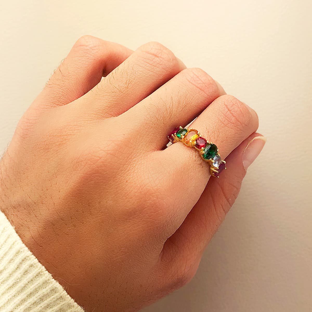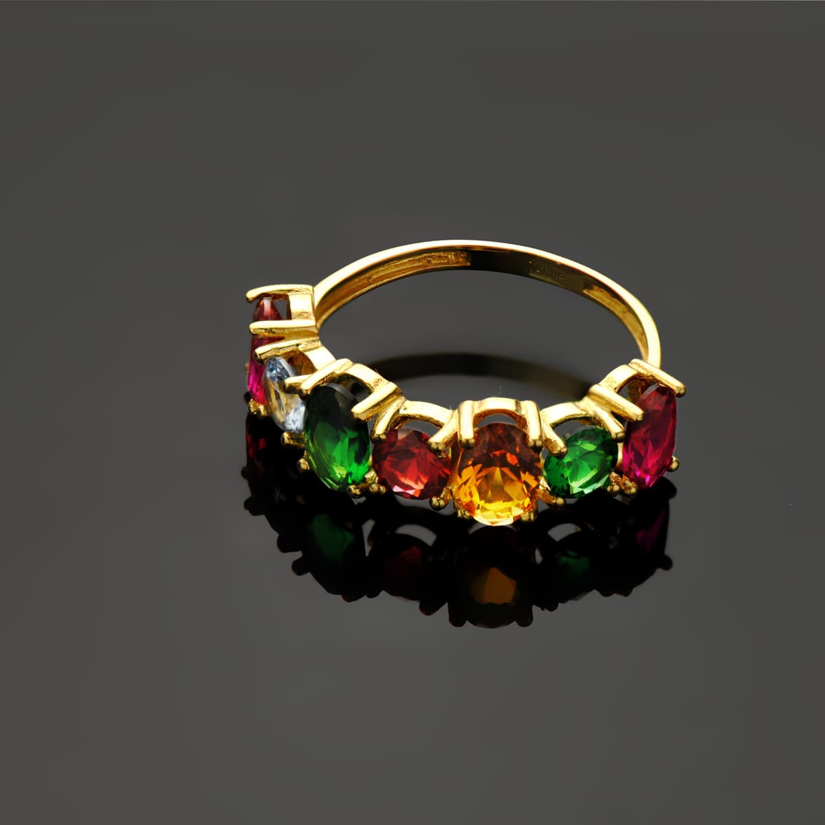 18K SORTIJA ORO AMARILLO CARRIL 6 MM SIETE GARRAS PIEDRAS DE COLORES