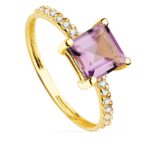 18K SORTIJA ORO AMARILLO CIRCONITA Y AMATISTA 6X6 MM ANCHO CUERPO 1,5 MM