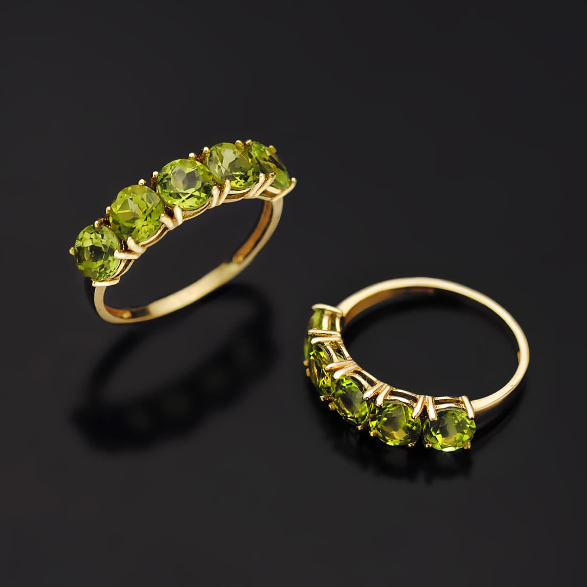 18K SORTIJA ORO AMARILLO CON 5 OLIVINAS NATURALES 2,87 QTS, ANCHO PIEDRAS 5 MM