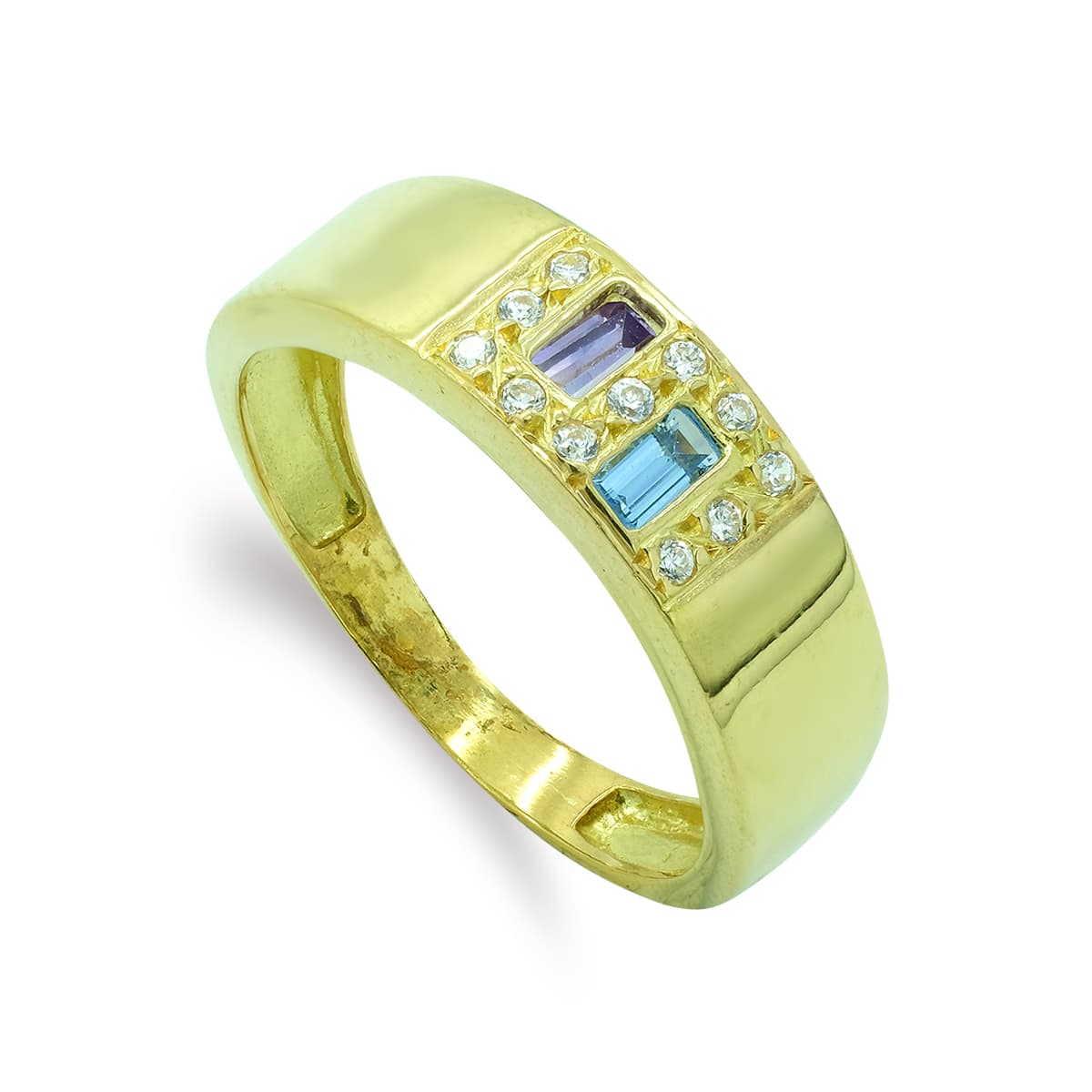 18K SORTIJA ORO AMARILLO CON CIRCONITA DE COLORES, ANCHO: 6,5 MM