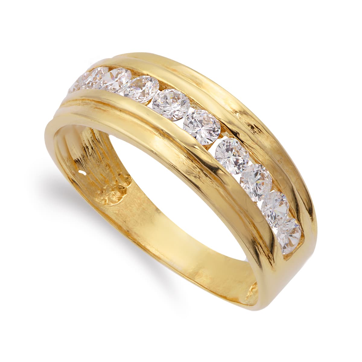 18K SORTIJA ORO AMARILLO CON CIRCONITA EN CARRIL, ANCHO: 7 MM