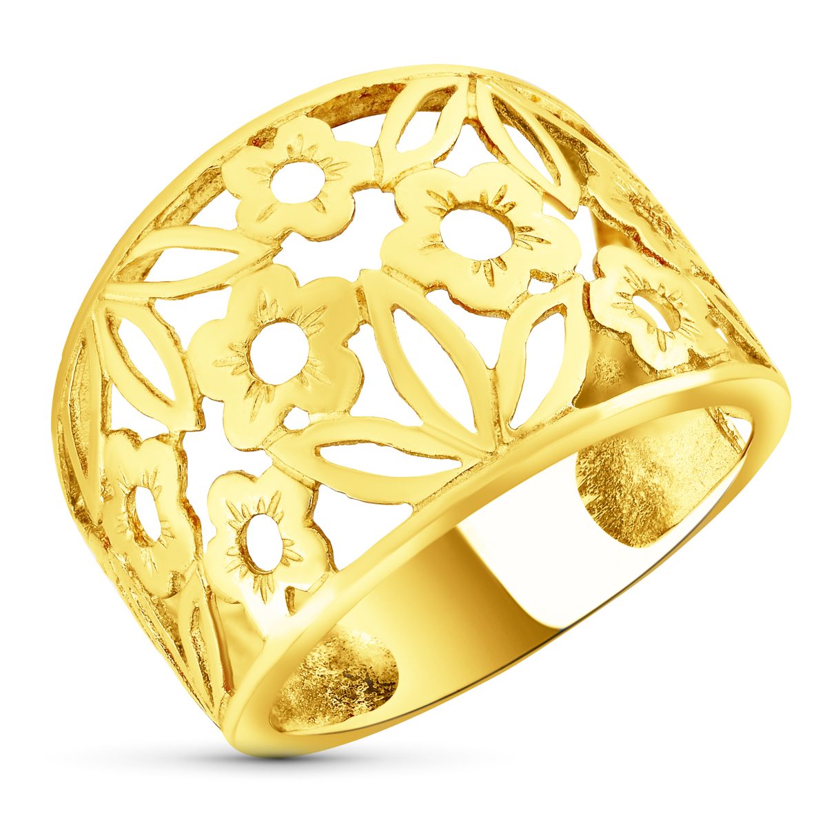 18K SORTIJA ORO AMARILLO FLORES CALADAS EN BRILLO, ANCHO: 16,5 MM