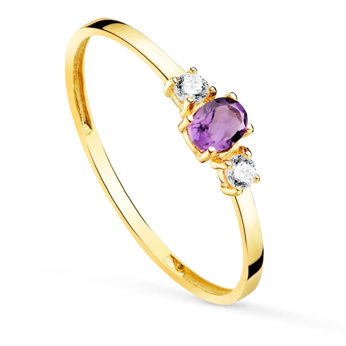 18K SORTIJA ORO AMARILLO PIEDRA AMATISTA 4X3 MM Y CIRCONITA ANCHO 1 MM