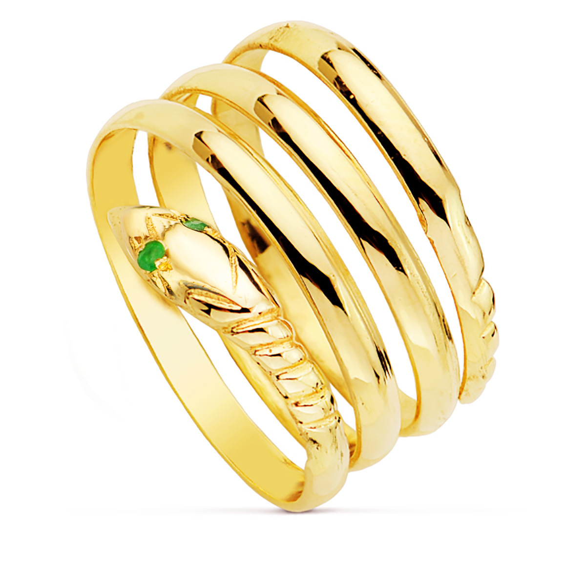 18K SORTIJA ORO AMARILLO SERPIENTE CUERPO 3 VUELTAS OJOS ESMERALDAS