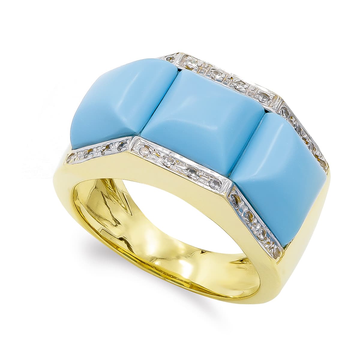18K SORTIJA ORO AMARILLO TURQUESAS 8X8MM Y CIRCONTAS, ANCHO: 12MM