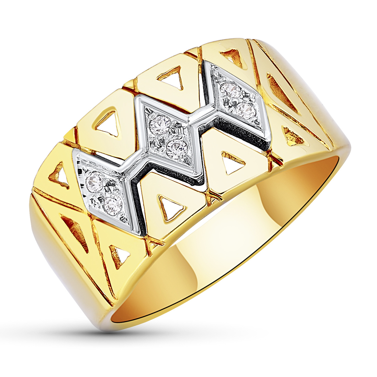 18K SORTIJA ORO BICOLOR CALADA CON ROMBOS, ANCHO: 10,5 MM