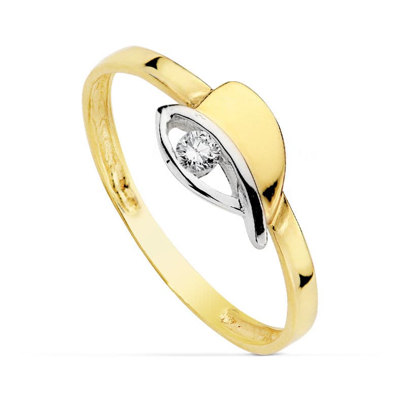 18K SORTIJA ORO BICOLOR CON HOJAS Y CIRCONITA, ANCHO: 6 MM