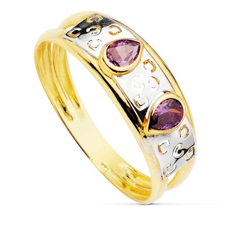 18K SORTIJA ORO BICOLOR DOBLE CUERPO MOTIVO CALADO Y CIRCONTIAS AMATSITA, ANCHO: 4 MM