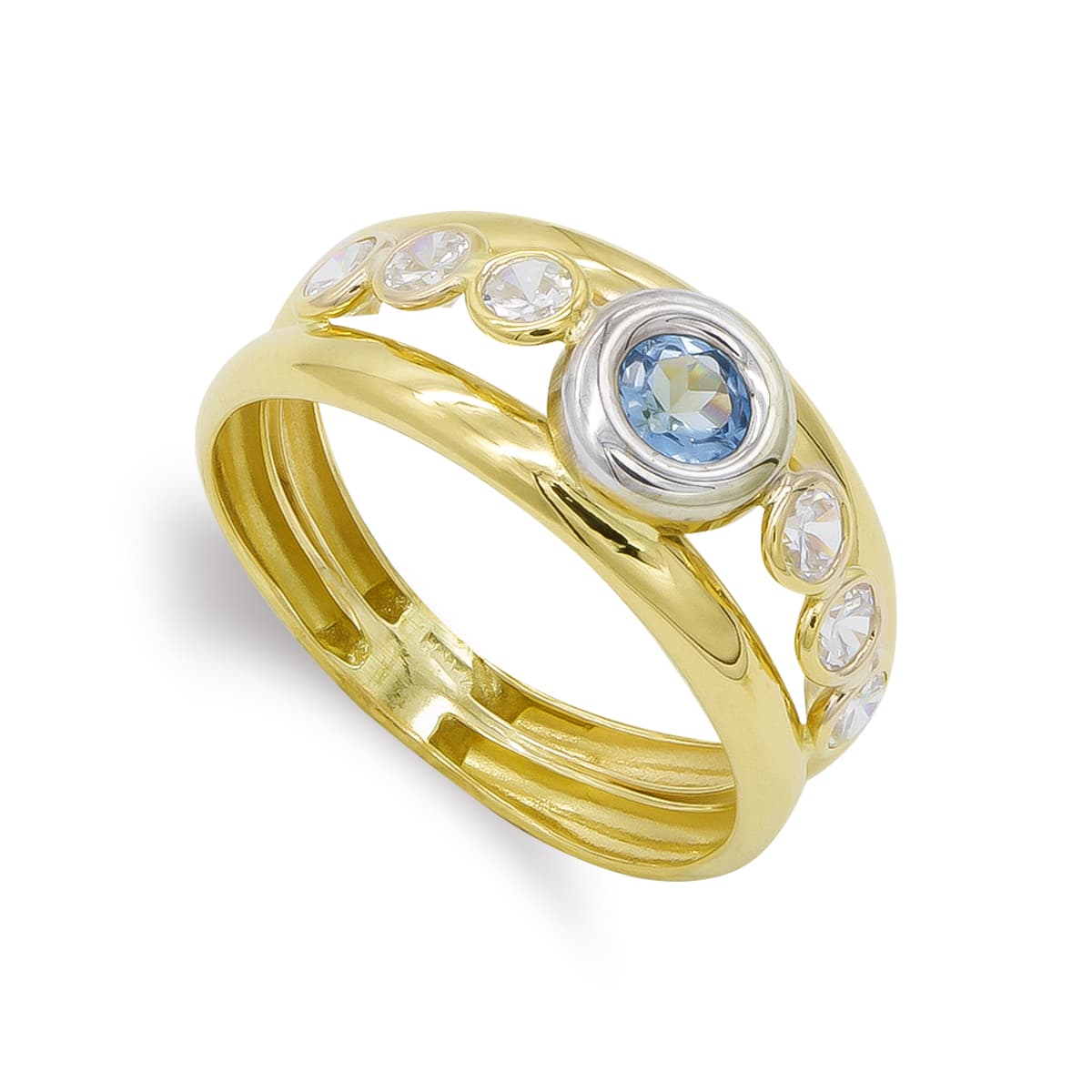 18K SORTIJA ORO BICOLOR DOS CUERPOS AGUAMARINA Y CIRCONITAS, ANCHO: 8,5 MM