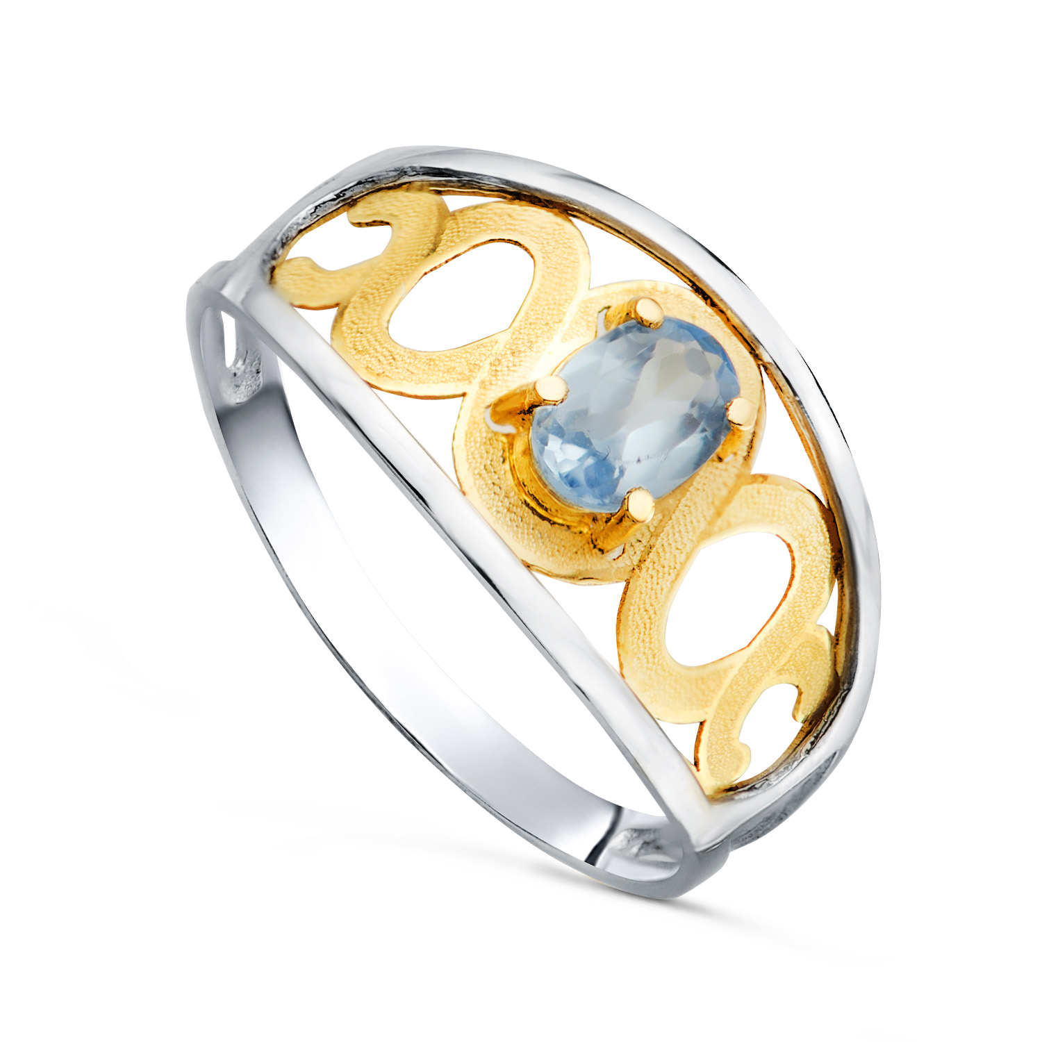 18K SORTIJA ORO BICOLOR MOTIVOS CALADA Y PIEDRA OVAL AGUAMARINA 6X 3,5 MM, ANCHO: 11MM