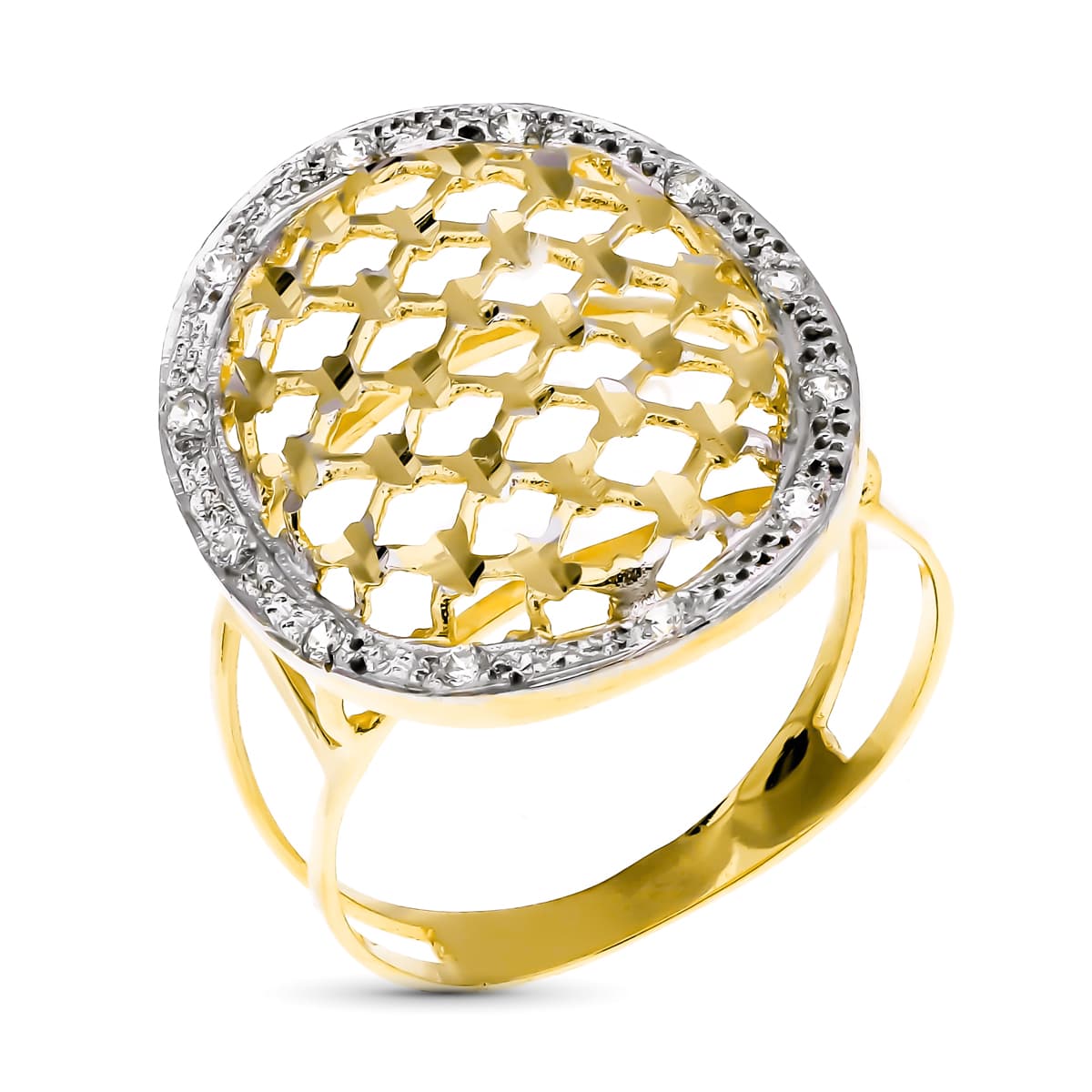 18K SORTIJA ORO BICOLOR OVAL TALLADA CON BORDE DE CIRCONITA 25X20 MM