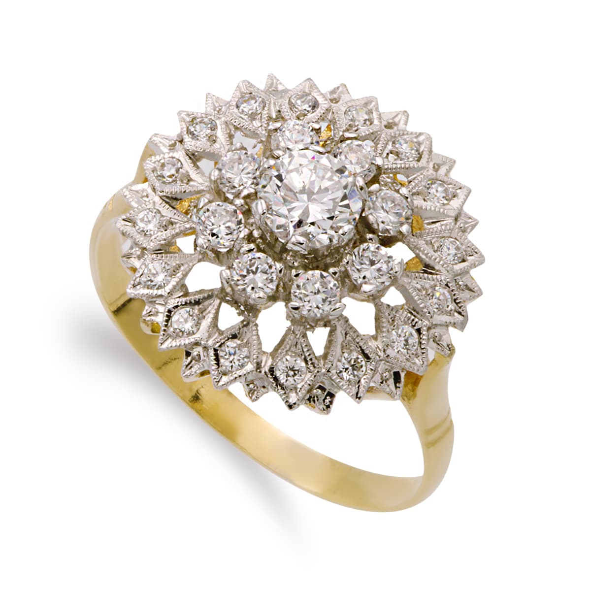 18K SORTIJA ORO BICOLOR ROSETA CON CIRCONITA 15 MM CUERPO 2 MM