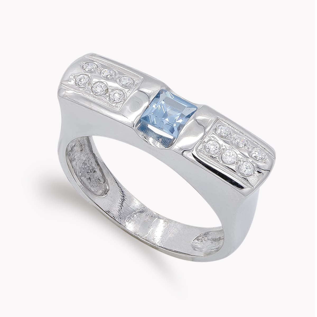 18K SORTIJA ORO BLANCO CIRCONITA AGUAMARINA Y BLANCAS, ANCHO: 6,5 MM