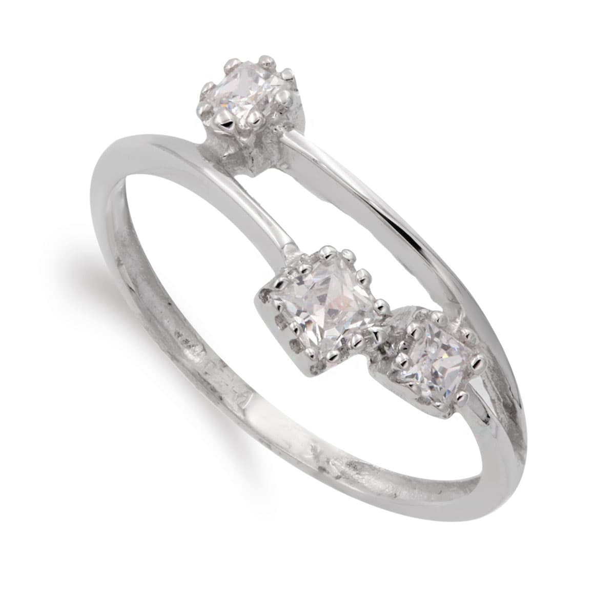 18K SORTIJA ORO BLANCO Y TRES CIRCONITA CUADRADAS, ANCHO: 7,5 MM