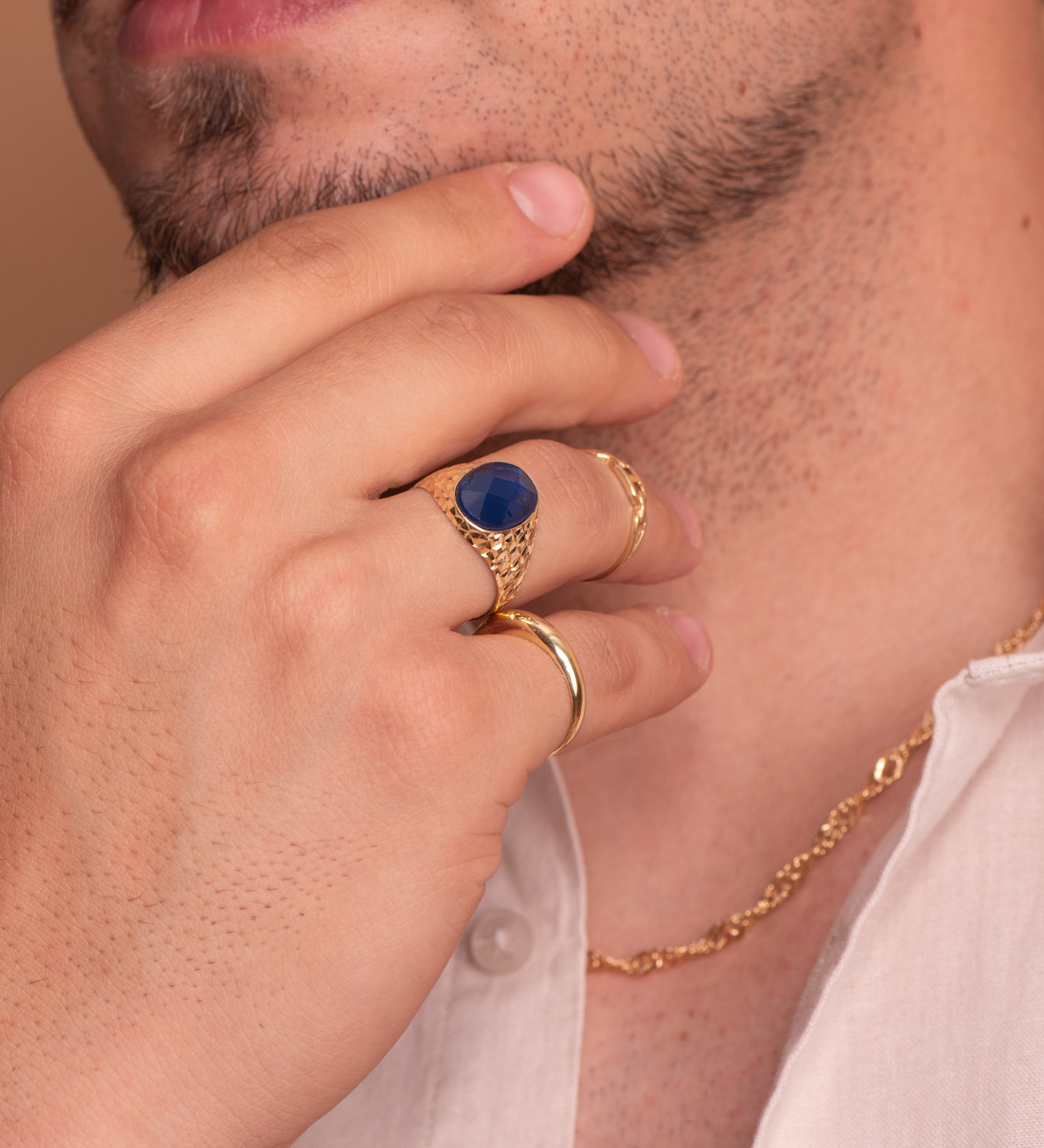 18K SELLO ORO AMARILLO HUECO PIEDRA OVAL ZAFIRO SPINEL 14X10 MM