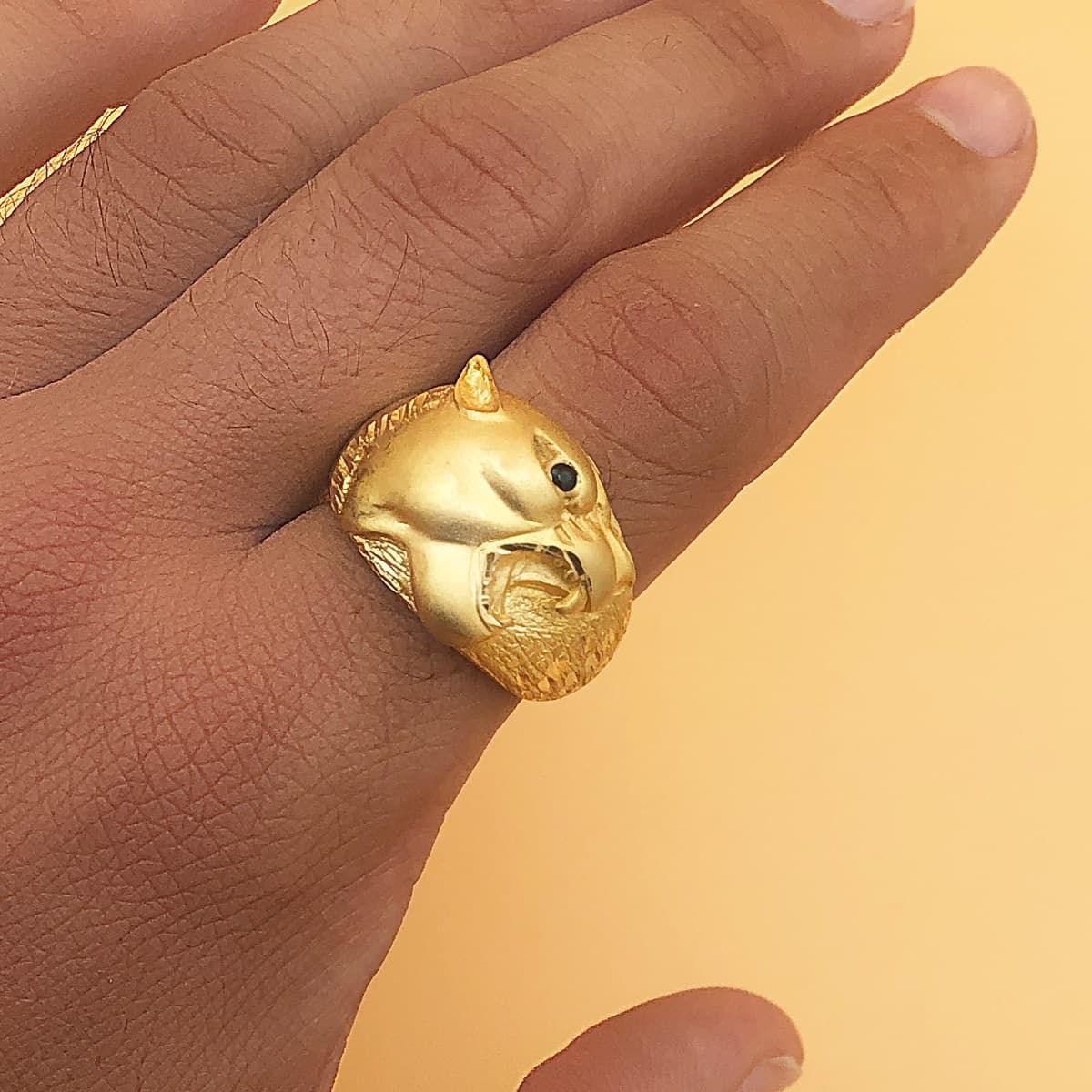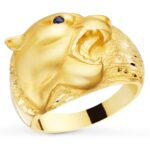 18K SELLO ORO AMARILLO MACIZO PUMA OJO ZAFIRO NATURAL, ANCHO 18 MM