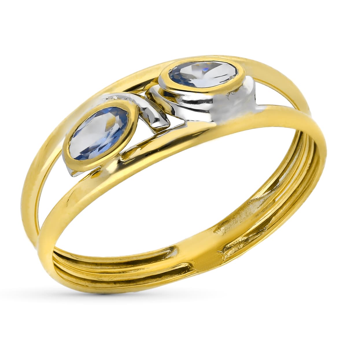 18K SORTIJA ORO BICOLOR DOBLE CUERPO CON CIRCONITA OVALES, ANCHO: 6,5 MM