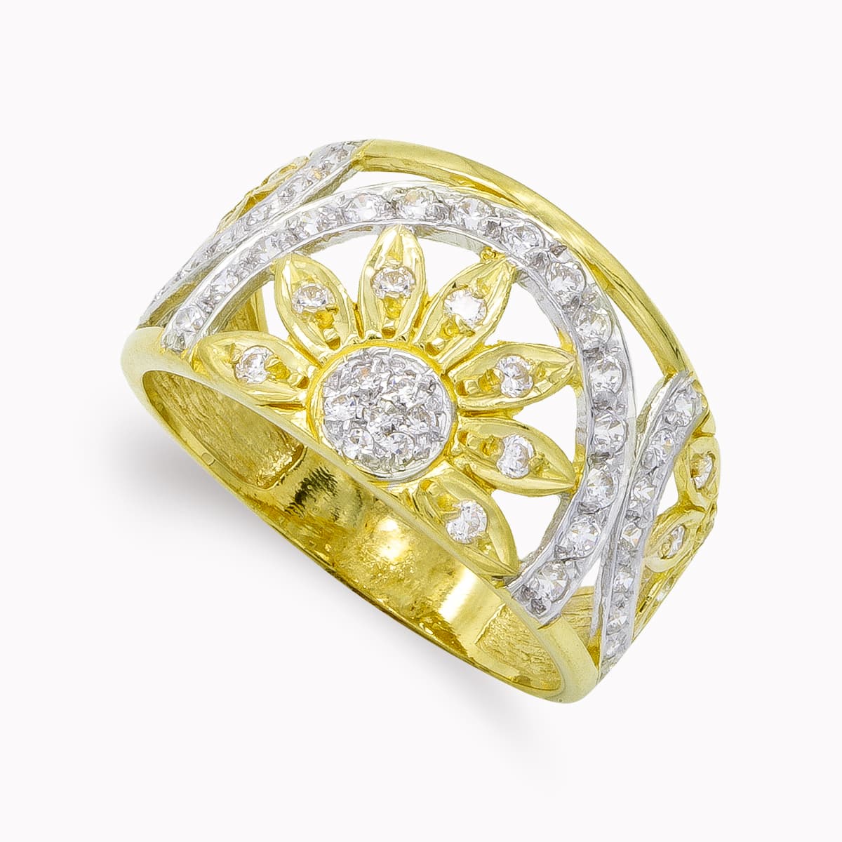 18K SORTIJA ORO BICOLOR SOLES CON CIRCONITAS, ANCHO: 12,5 MM