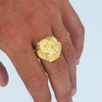 18K SELLO ORO AMARILLO MACIZO CABEZA DE BUHO TALLADO 22X22 MM