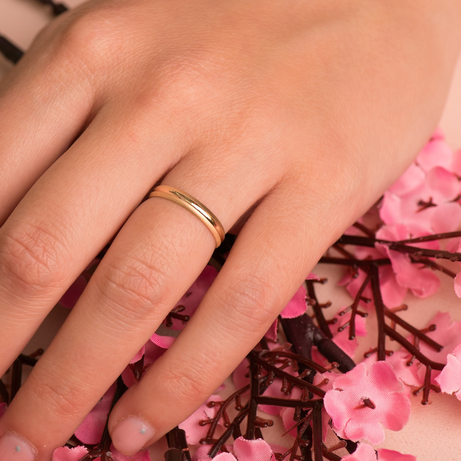 18K ALIANZA ORO AMARILLO MATE Y BRILLO, ANCHO: 3 MM