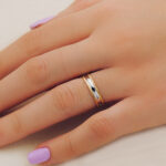 18K ALIANZA ORO BICOLOR BRILLO Y BORDES ESTRIADOS, ANCHO: 4 MM