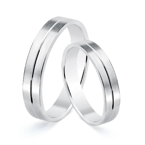 18K ALIANZA ORO BLANCO MATIZADA Y FILO CENTRAL BRILLO 5MM