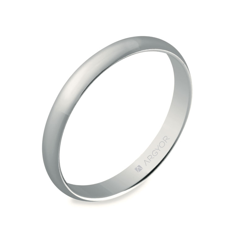 Alianza de boda clásica media caña de oro blanco de 18K modelo 5B305 de 3 mm de ancho. Cuenta con un acabado pulido brillante y un interior plano. A esta alianza se le puede añadir un diamante talla brillante de 0.02ct color H y pureza SI. Solicitela con la referencia 5B305D