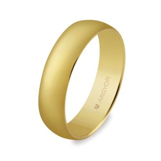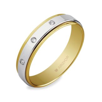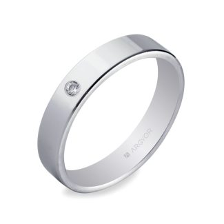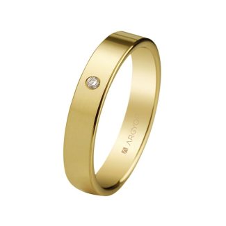 Alianza de diseño Argyor oro de 18K, referencia 5140047, de 4 mm de ancho. Este anillo de bodas tiene un acabado pulido brillante biselado y un interior plano. A esta alianza se le puede añadir un diamante talla brillante de 0.01 ct color H, pureza SI. Solicitela con la referencia 5140047D