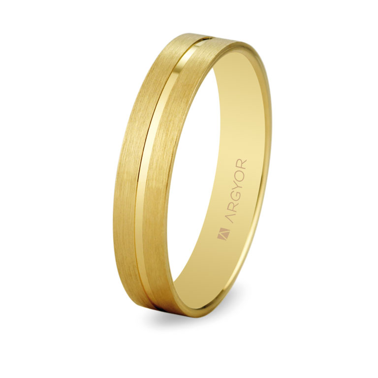 Alianza de diseño Argyor oro de 18K referencia 5140494 de 4 mm de ancho de la colección creaciones alianzas de boda Argyor. Esta joya tiene un acabado mate y brillante y un interior plano.
