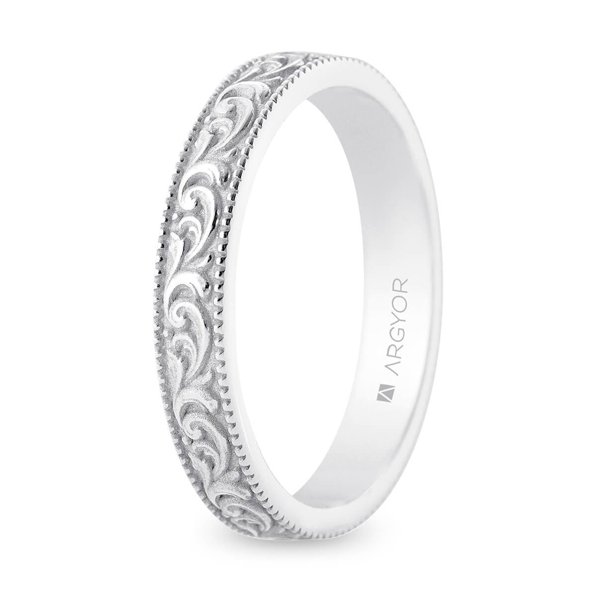 Alianza oro blanco de 18lk de 3.0 mm. Acabado combinado mate-brillo. Dise��o flo