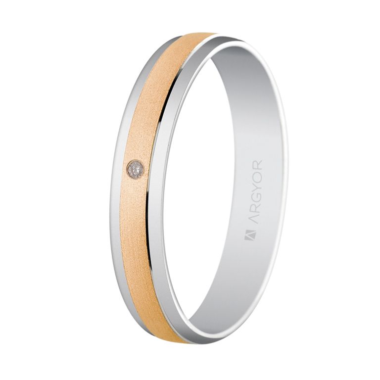 Alianza diamante Argyor oro rosa de 18K modelo 5C40044D, de 4 mm de ancho. Este anillo dispone de un acabado mate y brillante y un interior plano. El diamante es de talla brillante y 0,02ct, color H y pureza SI.