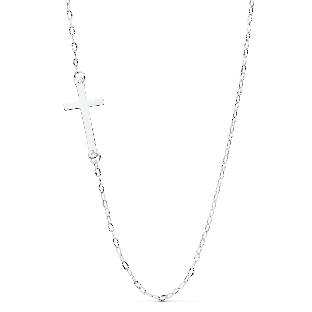 18K GARGANTILLA ORO BLANCO CRUZ 17X8 MM CADENA FORZADA 42CM