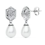 18K PENDIENTES PERLA ORO BLANCO CIRCONITA PRESION