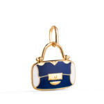 18K COLGANTE ORO AMARILLO BOLSO CON ESMALTE AZUL Y BLANCO, MEDIDA: 14 X 13 MM