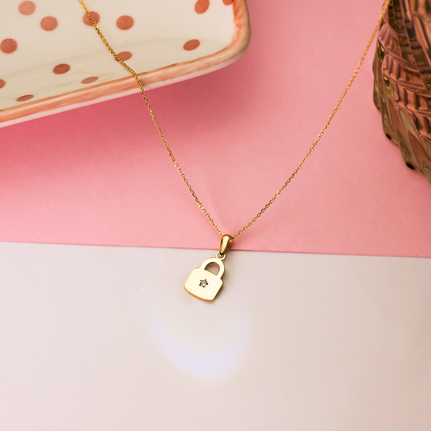 18K COLGANTE ORO AMARILLO CANDADO EN BRILLO CON CIRCONITA 14 X 9 MM