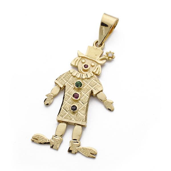 18K COLGANTE ORO AMARILLO PAYASO ARTICULADO, 33X13 MM