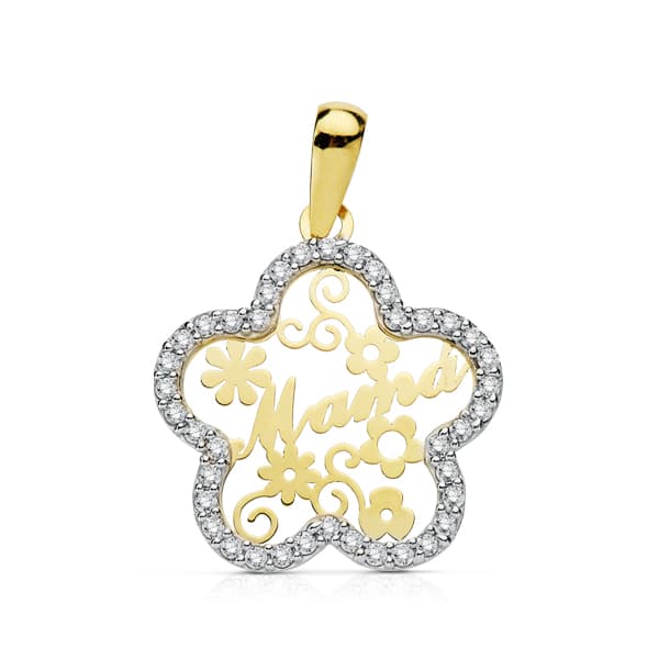 9K COLGANTE ORO BICOLOR MAMA CIRCONITA FLOR 18 MM