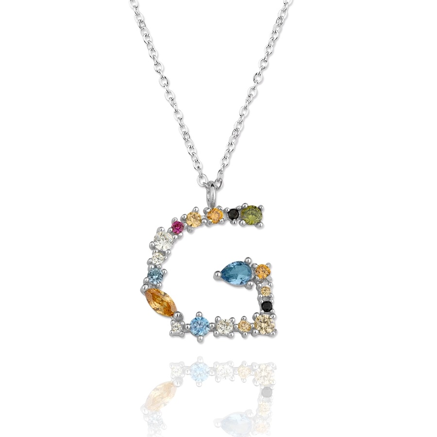 Gargantilla Inicial «A» con circonitas plata de ley 925mm, con una altura de inicial de 17mm y un largo de cadena que va desde los 40 a 45 cm.