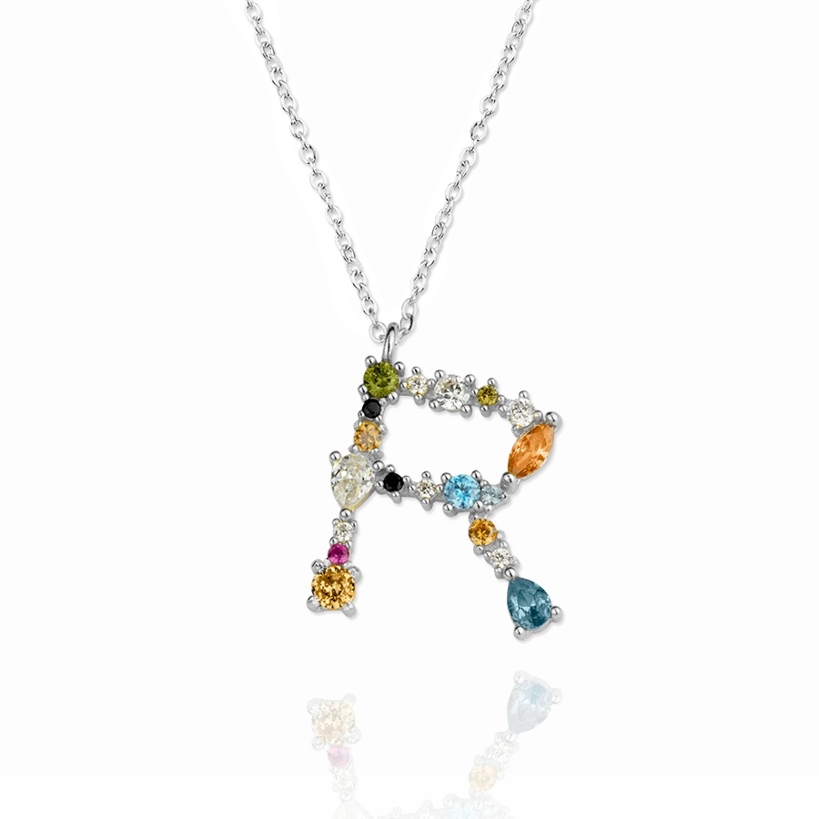 Gargantilla Inicial «A» con circonitas plata de ley 925mm, con una altura de inicial de 17mm y un largo de cadena que va desde los 40 a 45 cm.