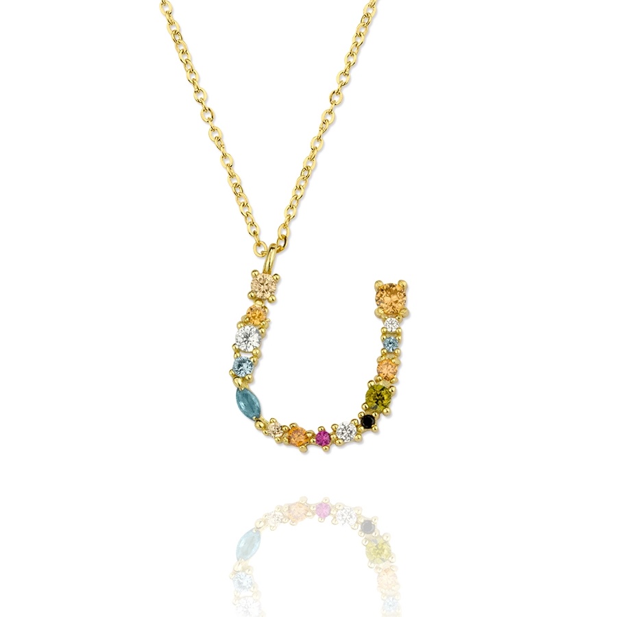Gargantilla Inicial «A» con circonitas plata de ley 925mm, con una altura de inicial de 17mm y un largo de cadena que va desde los 40 a 45 cm.
