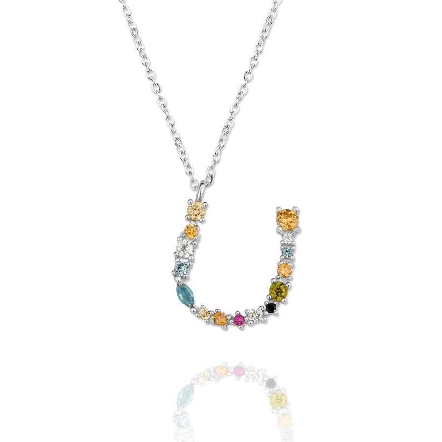 Gargantilla Inicial «U» con circonitas plata de ley